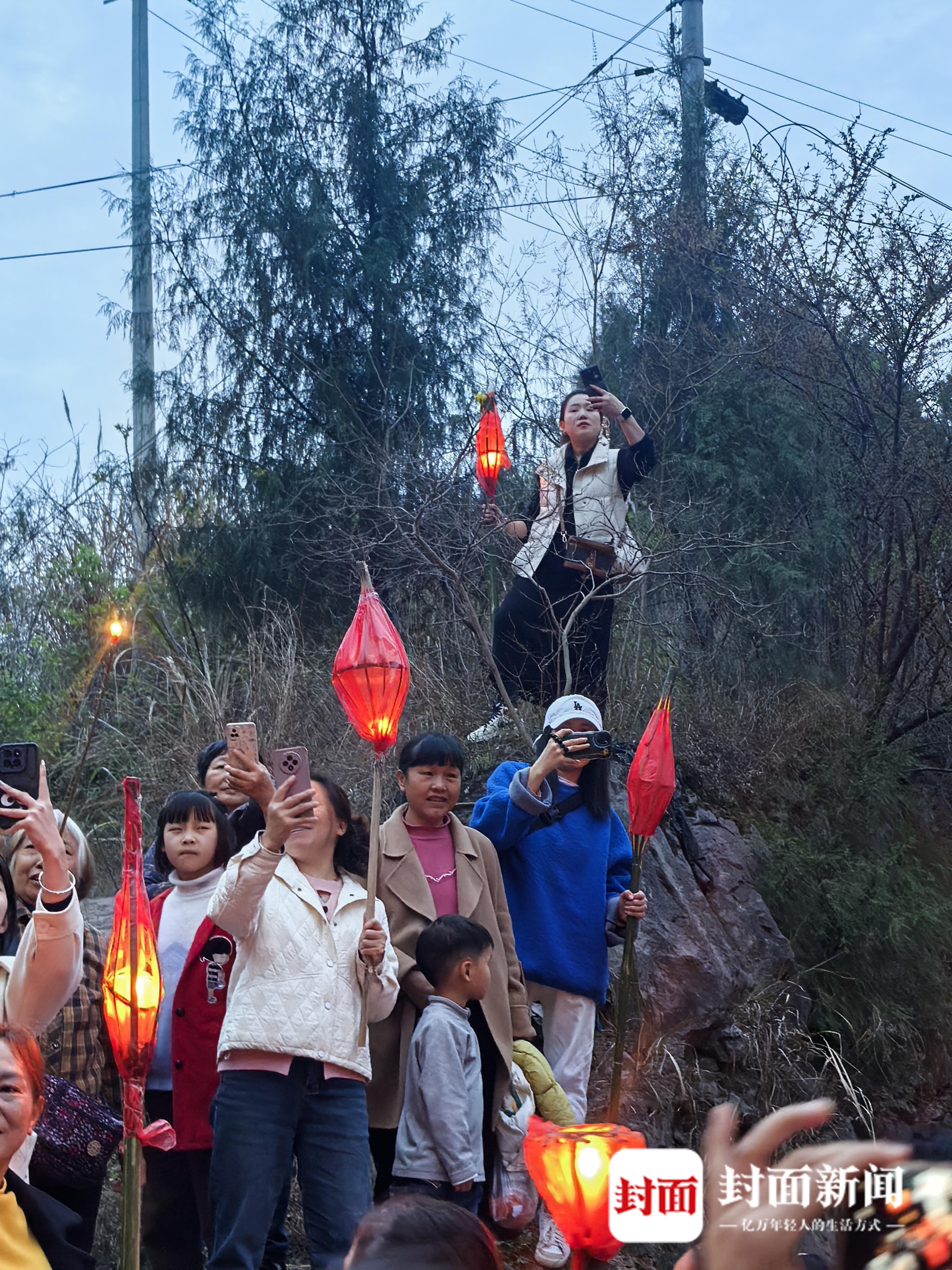 夜色渐浓,村里的灯一盏接一盏亮起,左邻右舍、远道而来的游客人手一盏蛴蟆灯,从各条小路汇聚到村口干道。