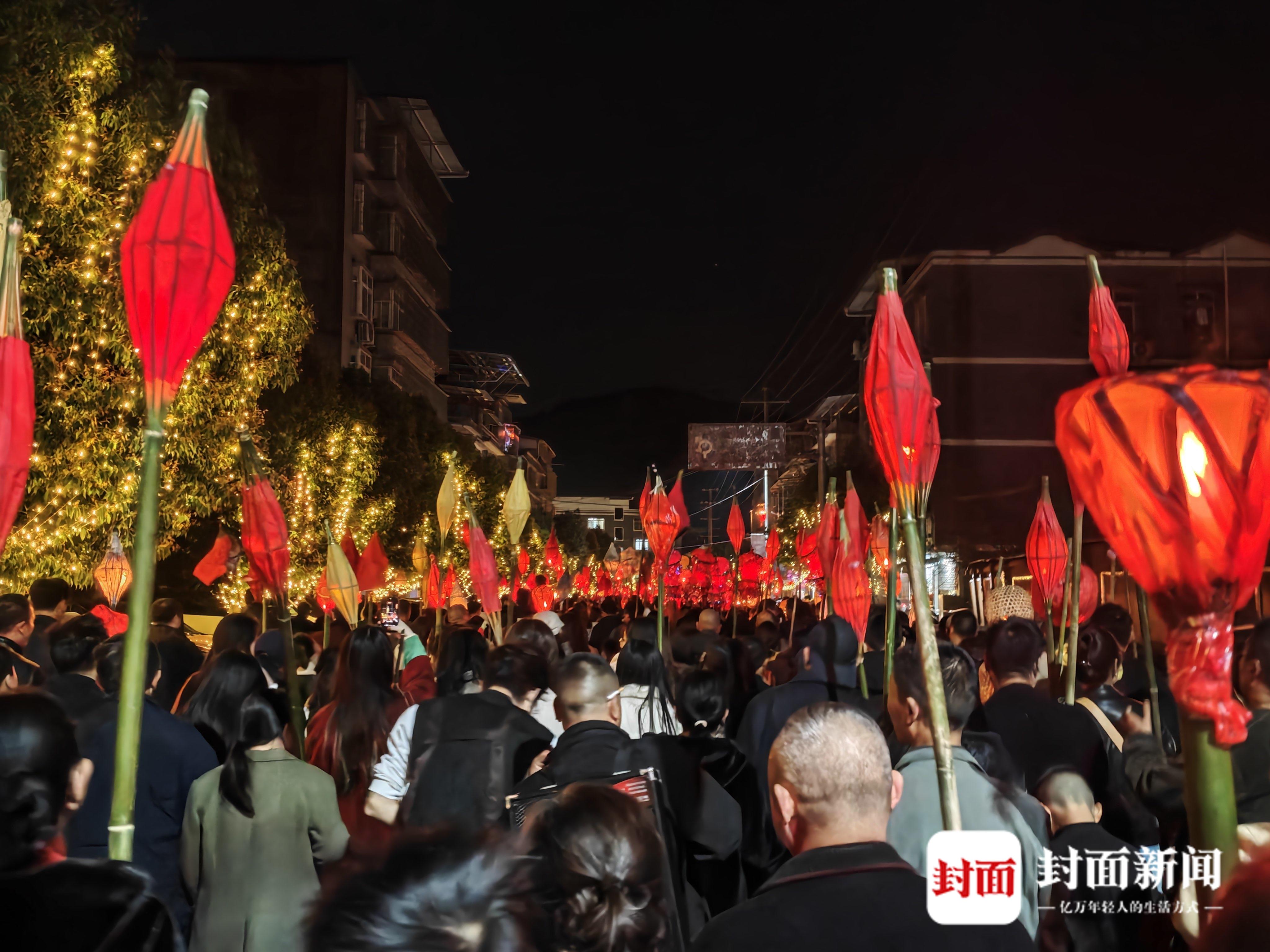 “蛴蟆公,蛴蟆婆,把你蛴蟆送下河……”童谣声在夜色里回荡,火把与灯笼交织,将寂静的山村照得如同白昼,数十公里的灯火如瀑布倾泻,造就地上银河的奇幻盛景。