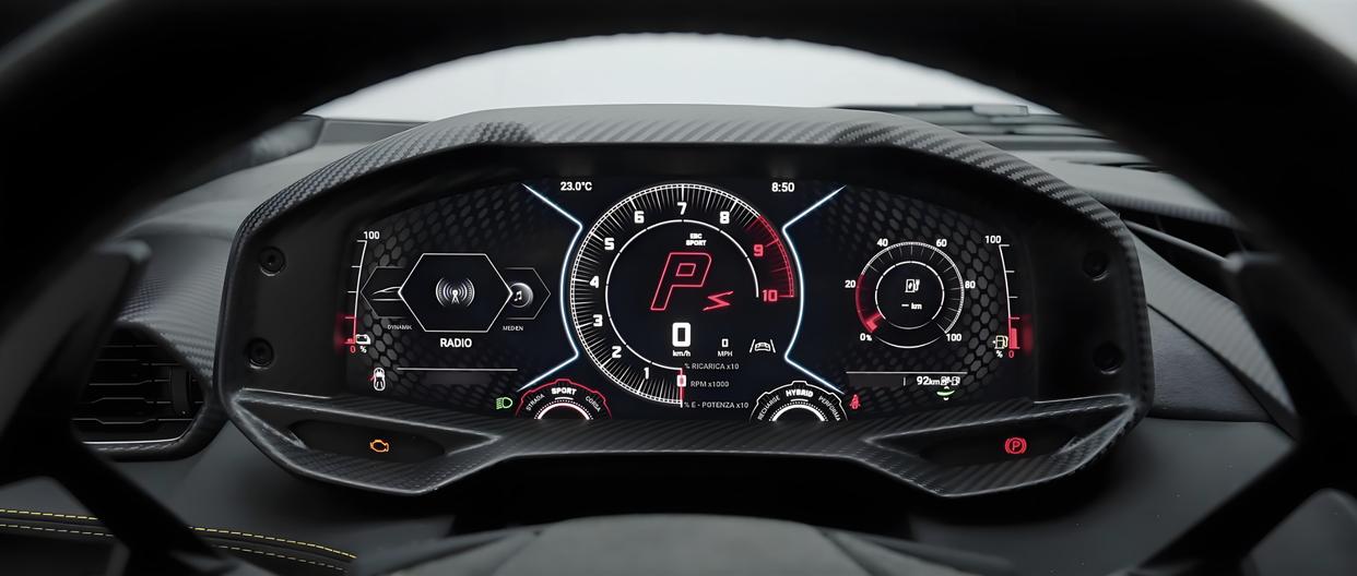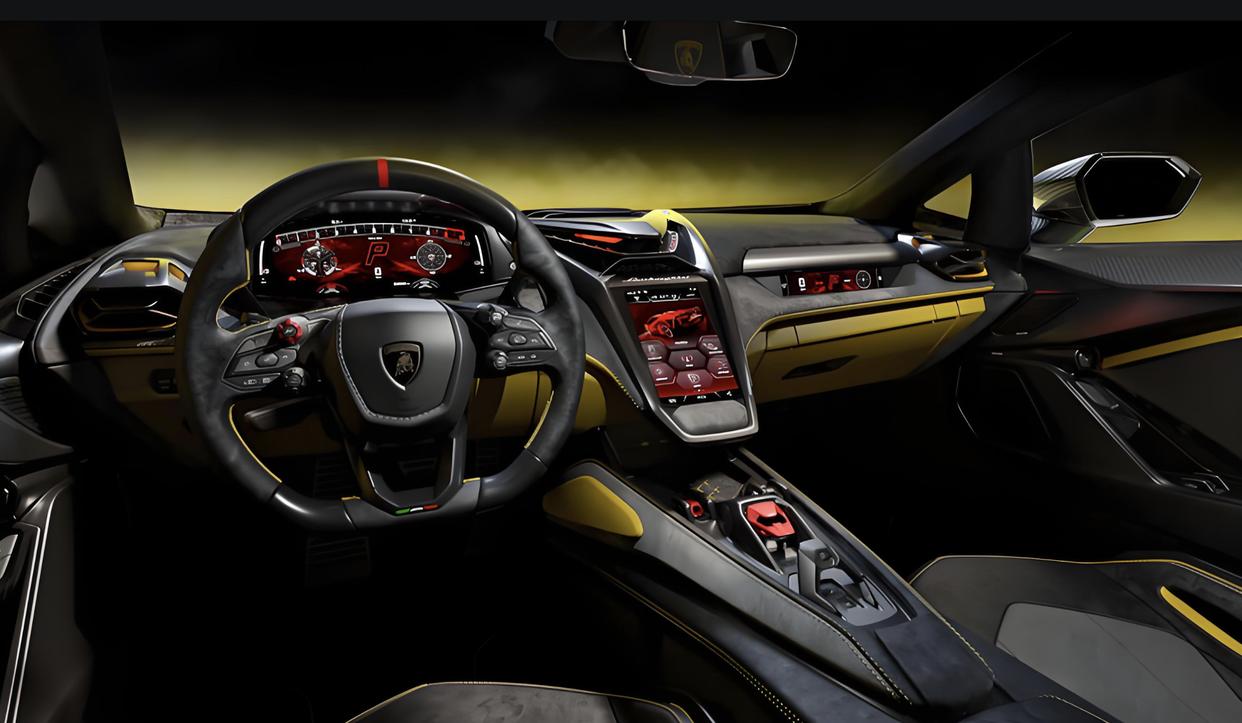 兰博基尼Manifesto概念车的内饰还没有曝光,保留了更多的神秘感。车内也将会采用了饱和度很低的灰色Alcantara面料铺陈,并加入了大量黑色碳纤维装饰板、还有随处可见的“Manifesto”镂空碳纤维饰板,提升了整车的独特性。中控台将会进行赛车化的精简,还将会配备防滚架和全新的方向盘,这些设计都是根据F1方程式赛车手的反馈开发的。加入了包裹性和支撑性极强的碳纤维座椅,能把驾驶者牢牢地锁死在座椅上。类似战斗机导弹发射按钮的一键启动按钮和排列整齐的拨杆,战斗氛围更加浓郁。科技感方面,该车将会配备了全液晶仪表、中控液晶屏、副驾驶多媒体大屏,支持手势控制以及Apple CarPlay等功能。