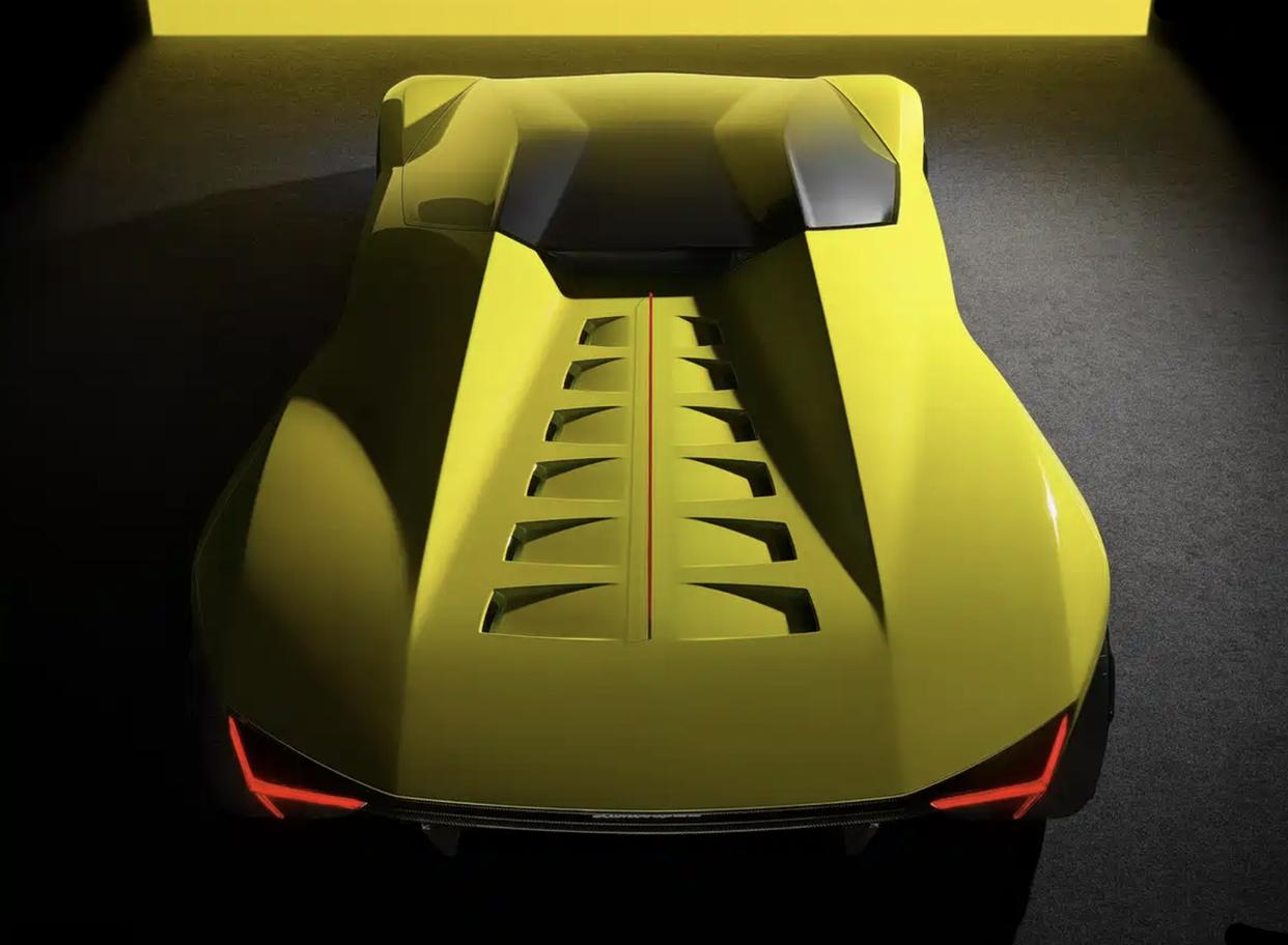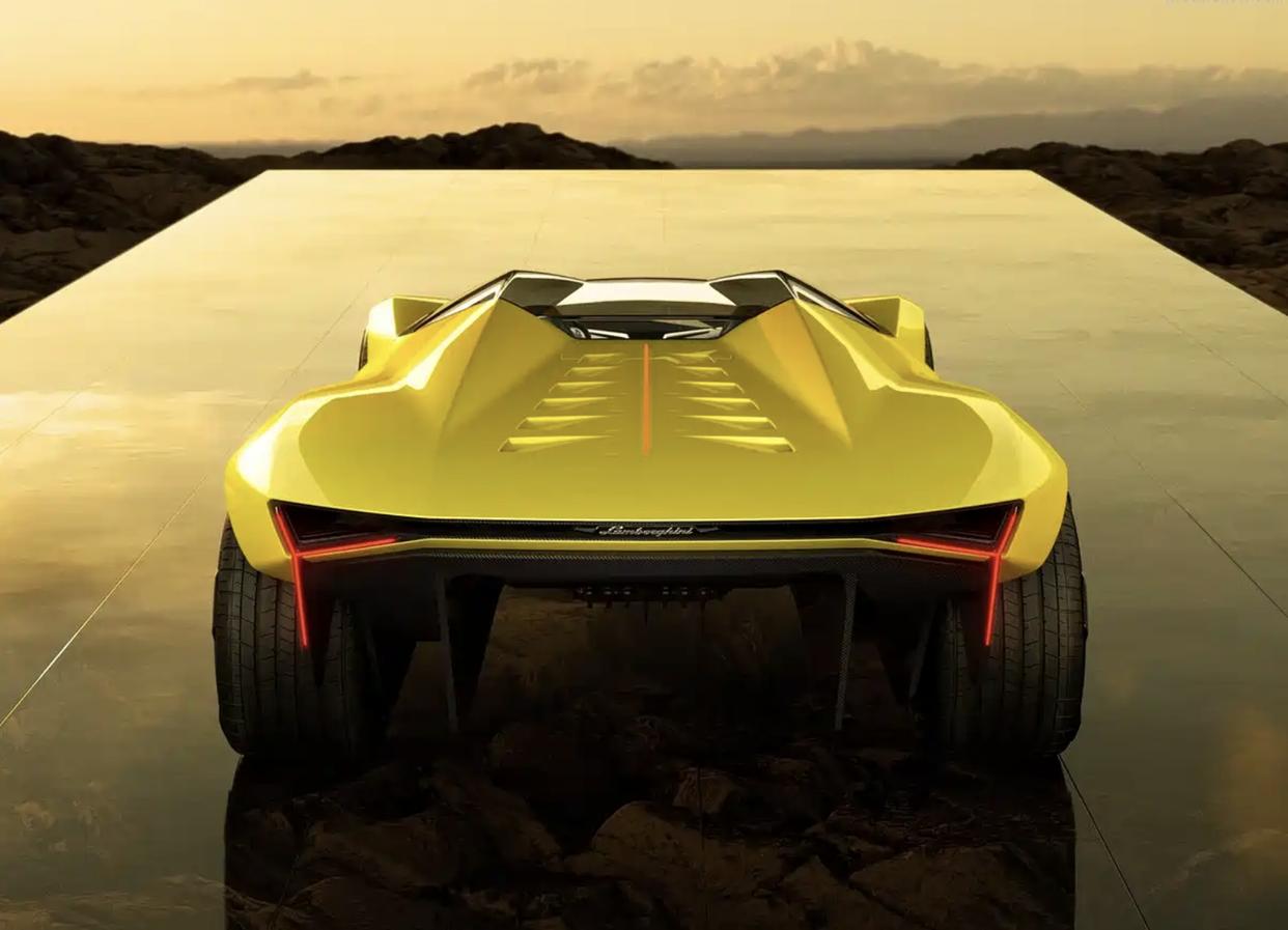 兰博基尼Manifesto概念车的车身造型更加低趴,预计车身高度1米出头。黑色的A柱与弧线形的车顶巧妙融为一体,玻璃穹顶也与车身线条完美的锲合在一起,与荧光黄色的特殊车漆配色形成了鲜明的撞色对比,打造出了悬浮式座舱的立体视觉效果。车身腰线更加锋利,拥有更加明显的光影效果。黑色碳纤维宽体侧裙与前后黑色宽体碳纤维侧裙采用一体成型设计。前20英寸、后21英寸的五边形锻造轮圈(轮胎规格,前轮255/30 R20;后轮355/25 R21)、红色的卡钳和扁平的热熔轮胎,同样带来了很强的视觉冲击力。车尾也配备了造型夸张的碳纤维底部扩散器,两侧还带有醒目的Y字形尾灯,辨识度很高。